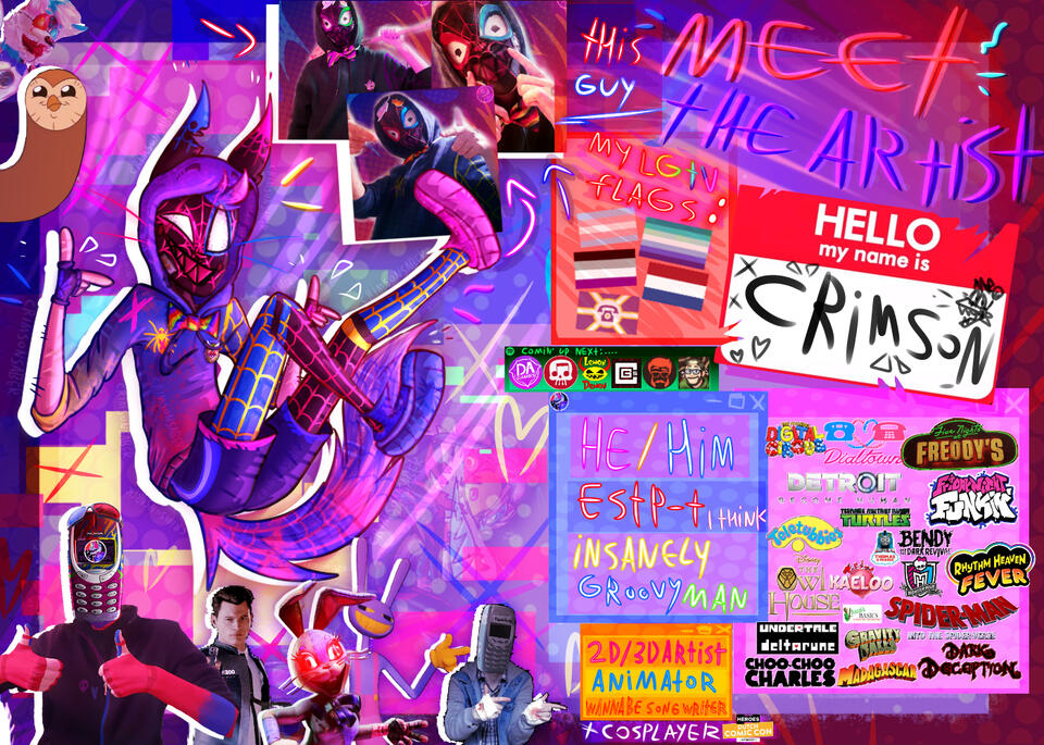 Heya! Im Crimson, more commonly known as Crimsonsaber and im a creative fella here to be silly and stay groovy (If not radical enough for you, fix it by yelling PHONE MEN into his asks ๐ฅฐ)He/HimArtist/Animator/ETCCreator of Radical Retrofit!